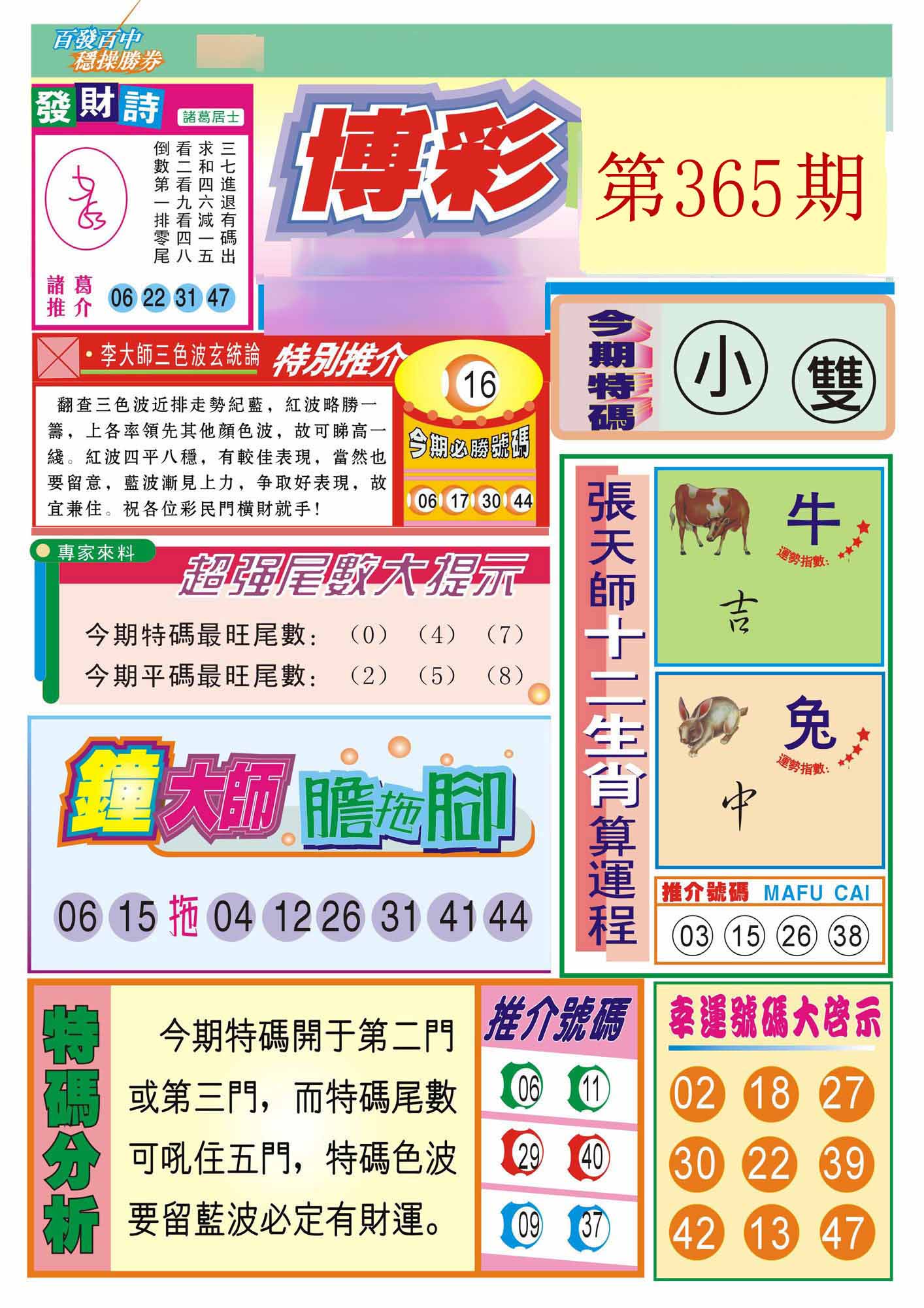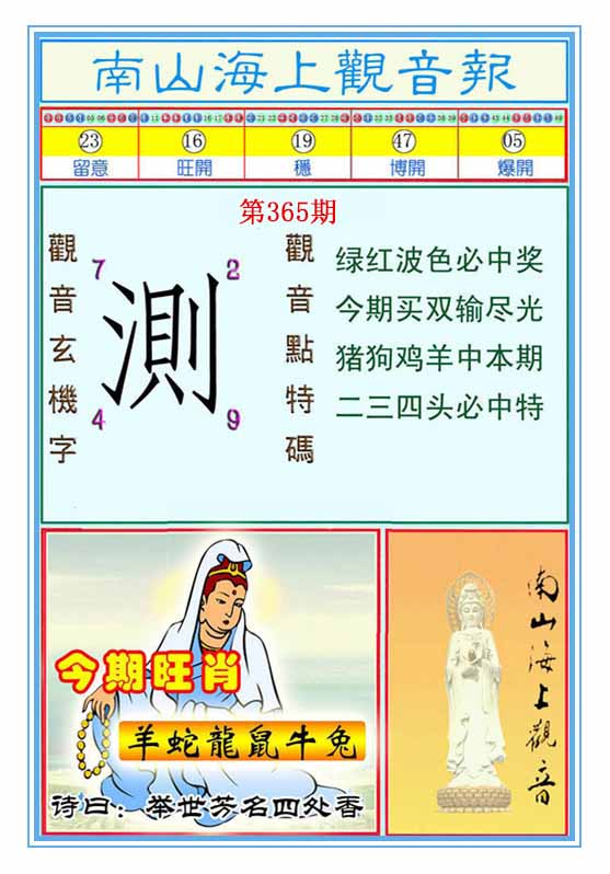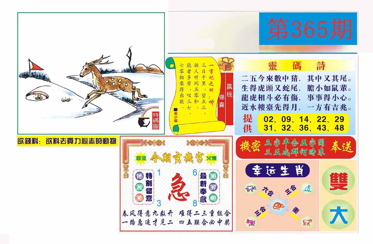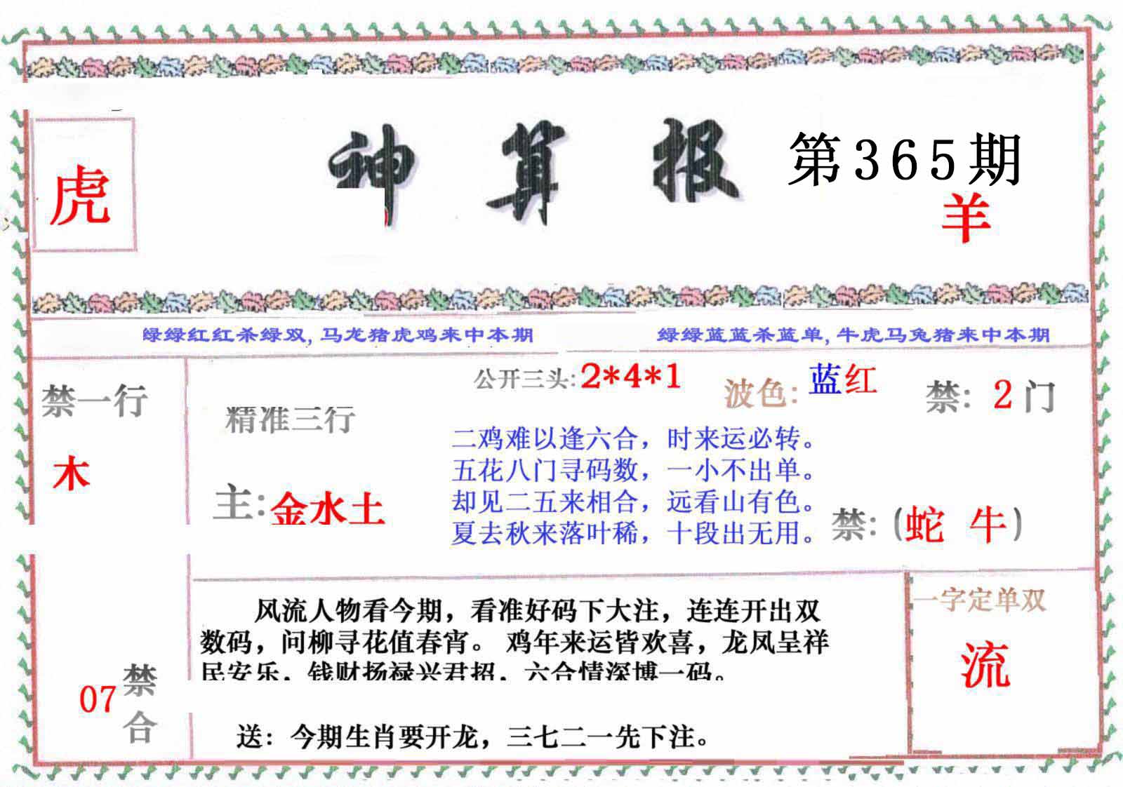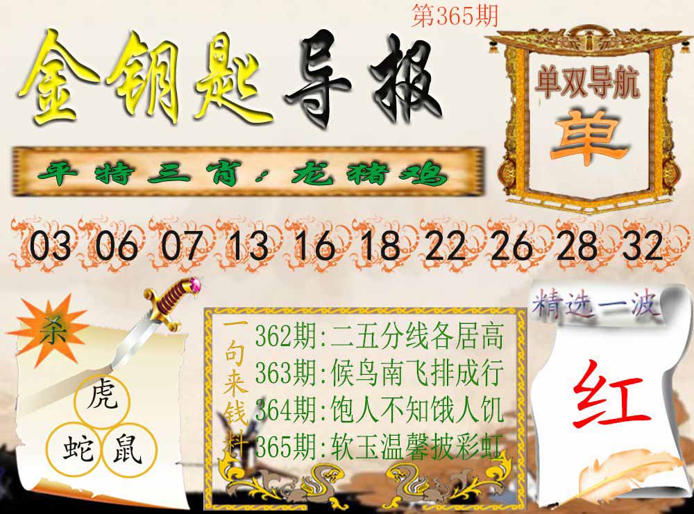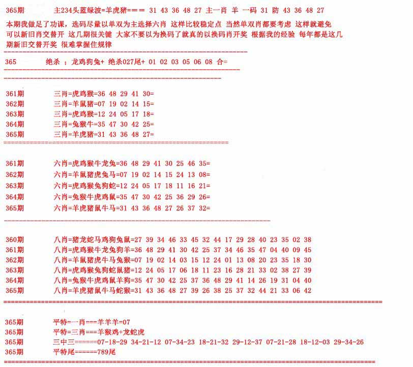 | 365期 | 马鼠羊虎狗蛇 | 0000 |