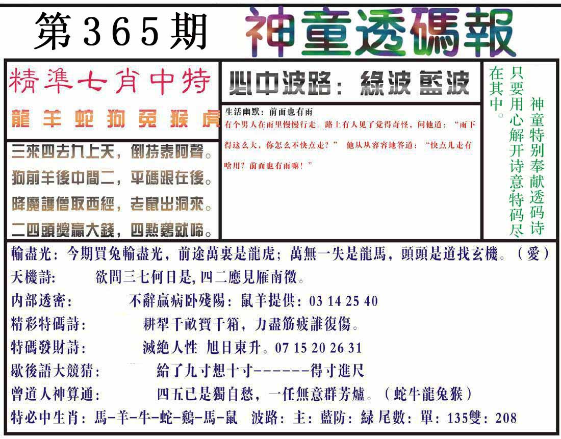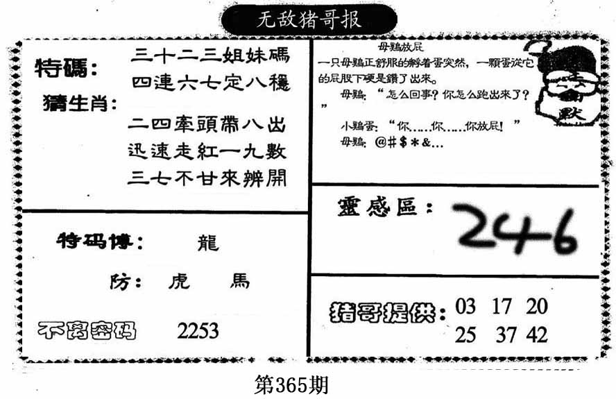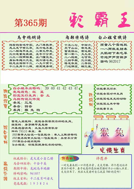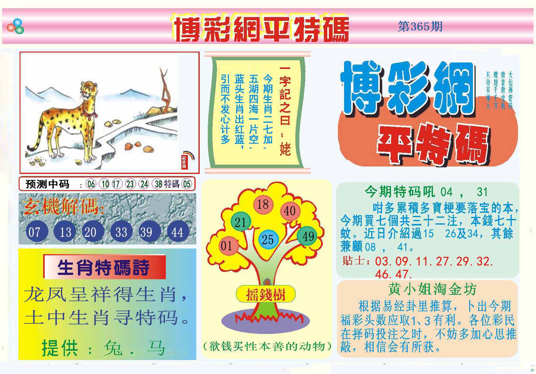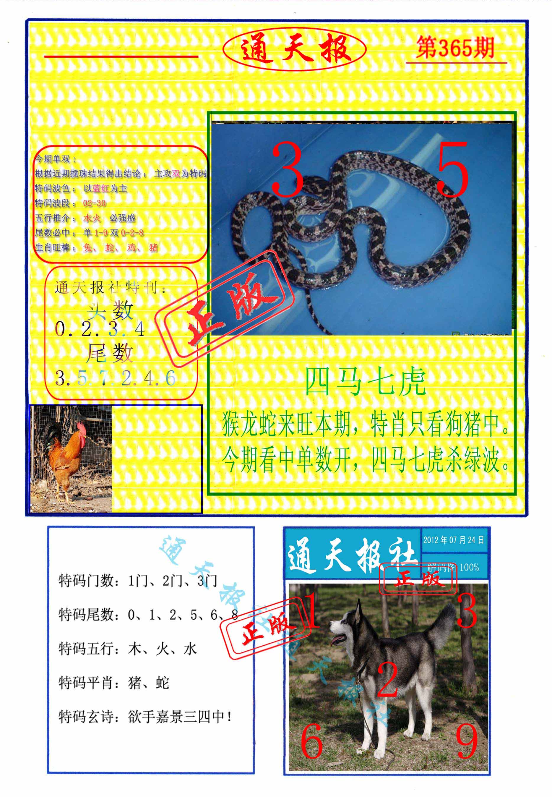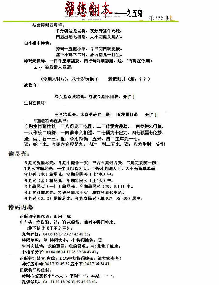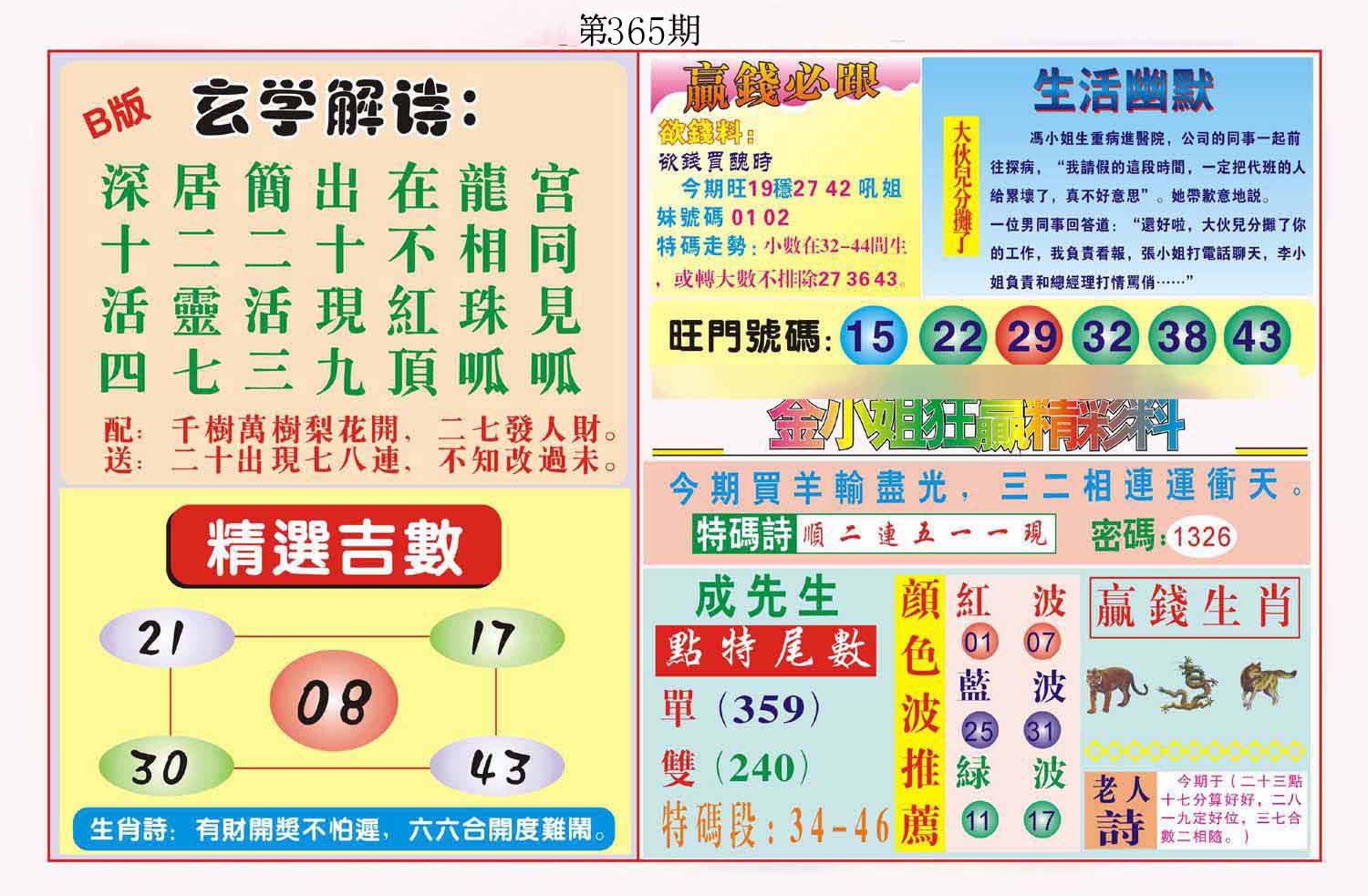 | 365期 | 马鼠羊虎狗蛇 | 0000 |