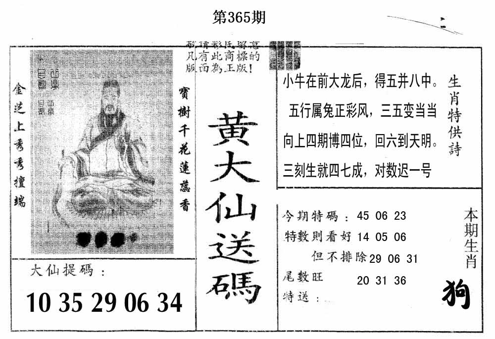 | 365期 | 狗 | 红大 | 4 | 3 | 开:0000 |