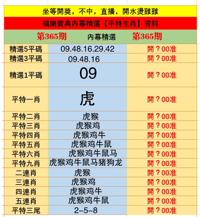 | 365期 | 平特一尾[222]平特开 | 00 准 |